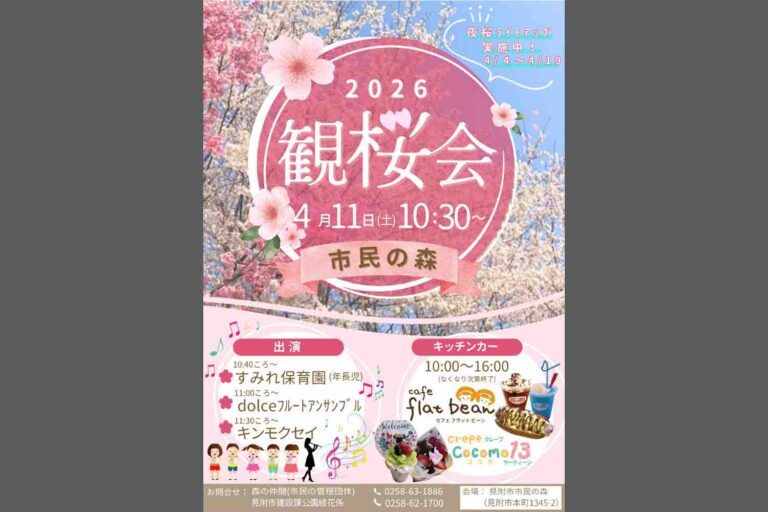 見附市にある「市民の森」にて、観桜会を4/11(土)に開催します。 約400本の...