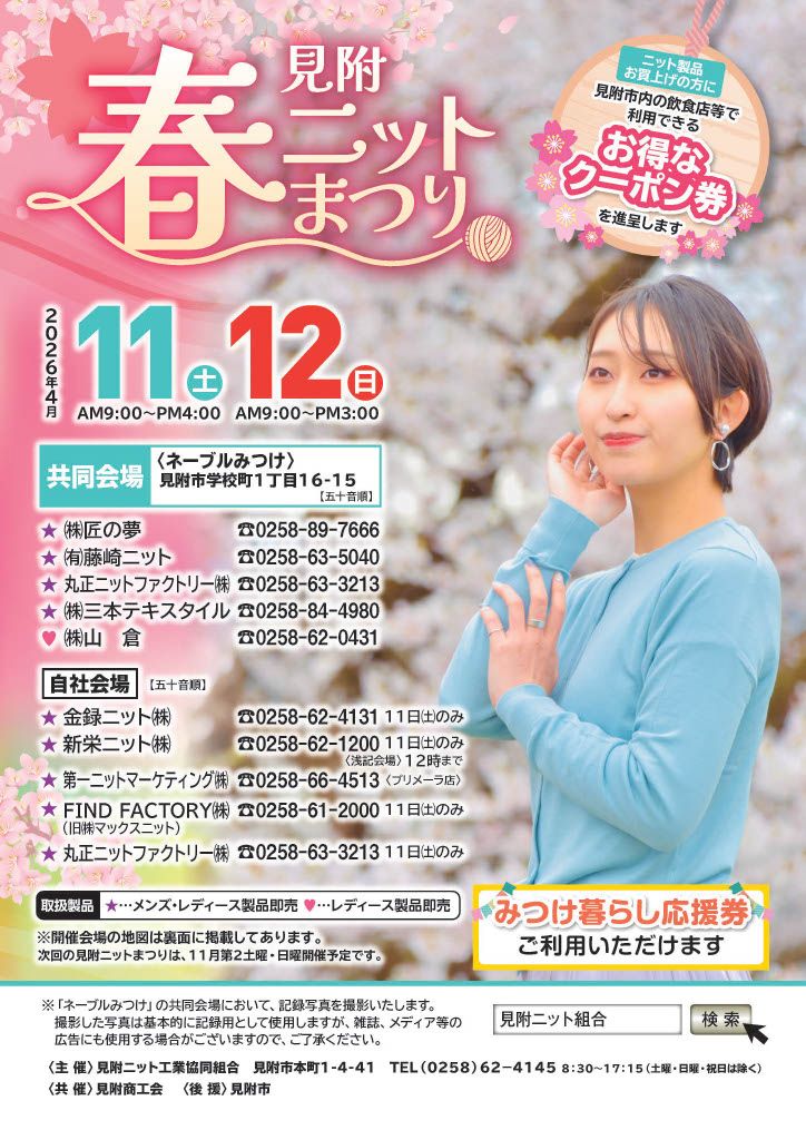 ニットをご購入の後は、ぜひ市内のお食事処やお土産店等にお立ち寄りし、春のおでかけをお楽しみください。