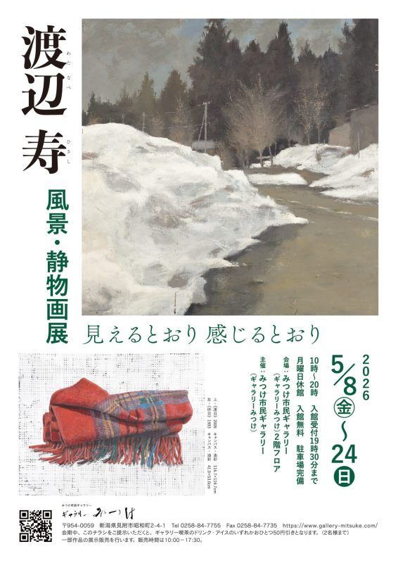 長岡市在住洋画家の展覧会を開催。永年繊細な写実表現を追究してきた作家の描く油彩の世界。地元の風景にじっくりと向き合った作品や、お気に入りの品々を描いた静物画を多数展示する。会期中展示室2では、小品の展示販売を行う。