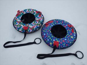 ※写真のタイプの他、ハンドルのないタイプ(一般的なソリ)もあります。また、時間内であれば、スノーチューブ、エアボードと交換が可能です。