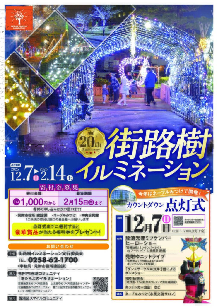 同時期には、今年で20周年を迎える「見附市街路樹イルミネーション」も実施されます。